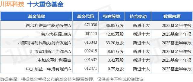 重仓川环科技的公募基金请见下表: